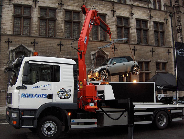 Wij beschikken eveneens over een vrachtwagen voor autotransport. Dit voertuig kan meerdere wagens transporteren en beschikt over de nodige transportvergunning.Ook beschikken we over een dieplader die grote en ondeelbare goederen (bv vrachtwagens) kan transporteren. Hiernaast hebben we nog 3 sterke kranen ter beschikking zoals een 40 ton /meter kraan.